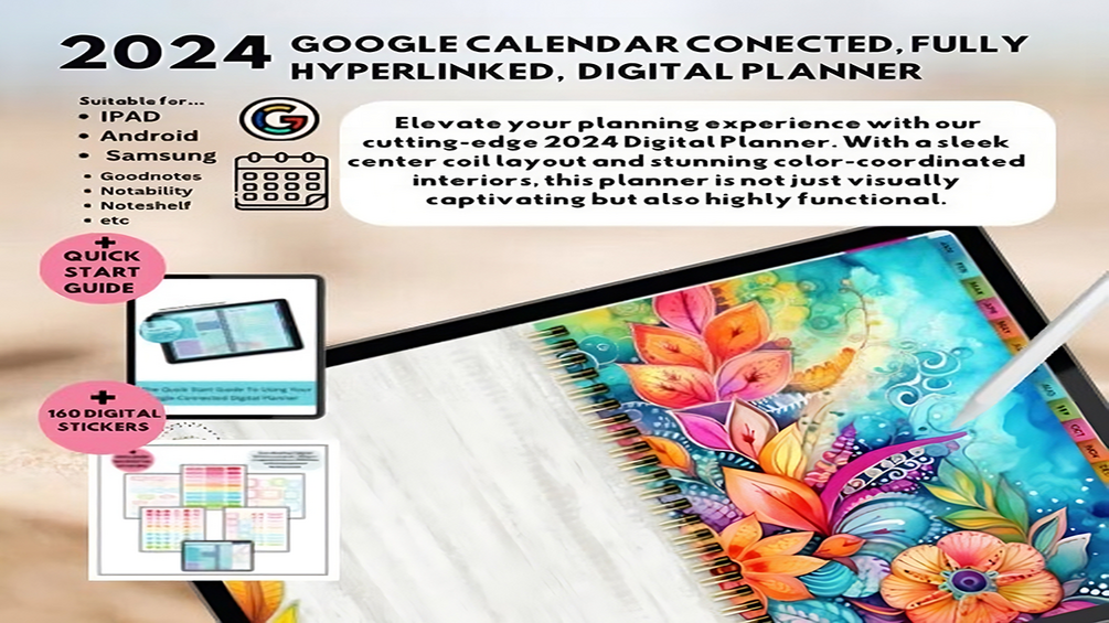 2024 Digital Planner Diary , Digital planner , Google Calendar , Planner , Productivity , Time management , Organization , Noteshelf , Goodnotes , iPad , Android , Hyperlinked , Index , User-friendly , Daily pages , Reminders , Events , Appointments , PDF , Digital download