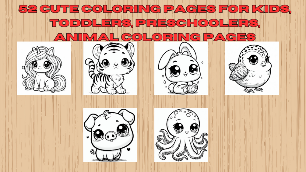 52 Cute coloring pages for Kids, Toddlers, Preschoolers, animal coloring pages. This simple and big animal coloring book is a great activity for kids of any age. You may print them as many times as you want.